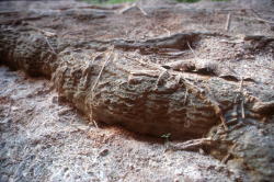 洞窟を出ると、やや広い谷になる。水流に浴って100mも下った所で右手側・左岸から川が合流する。その堤所からでは見えないが、別の洞窟からの水のようである。さらに川を下ってから左岸を急登する。100mほど登った所に洞窟があるが、このあたりで蜂に襲われ一人刺された。この洞窟は10mもない貫通洞である。洞窟を出てさらに100m登り、200~300m降りると、毎日車で通る道の途中に出て、車にピックアップされた。 |